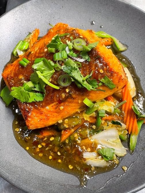 Fried tilapia, sautéed mixed vegetable with spicy tamarind sauce