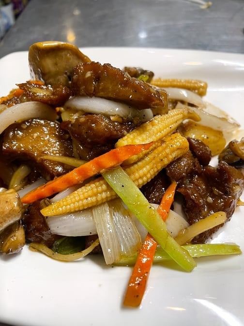 Spicy. Celery, bell pepper, onion, broccoli, baby corn & chili yam